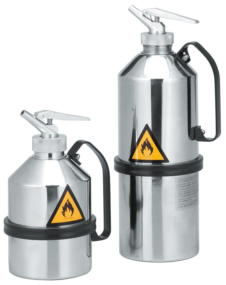 ∙ Sicheres Lagern, Verteilen, Befüllen und Transportieren brennbarer Flüssigkeiten aller Gefährdungsklassen ∙ Schützen den Tagesbedarf an brennbaren Flüssigkeiten am Arbeitsplatz ∙ Behälter aus hochwertigem Edelstahl 1.4401 ∙ Dichtungen aus PTFE ∙ Herausnehmbare Flammsperre aus perforiertem Edelstahl ∙ Überdruckventil im Feindosierer und der Schraubkappe verhindern ein Explodieren des Behälters bei Erwärmung ∙ Kennzeichnungsaufkleber mit Warnsymbolen/-hinweisen