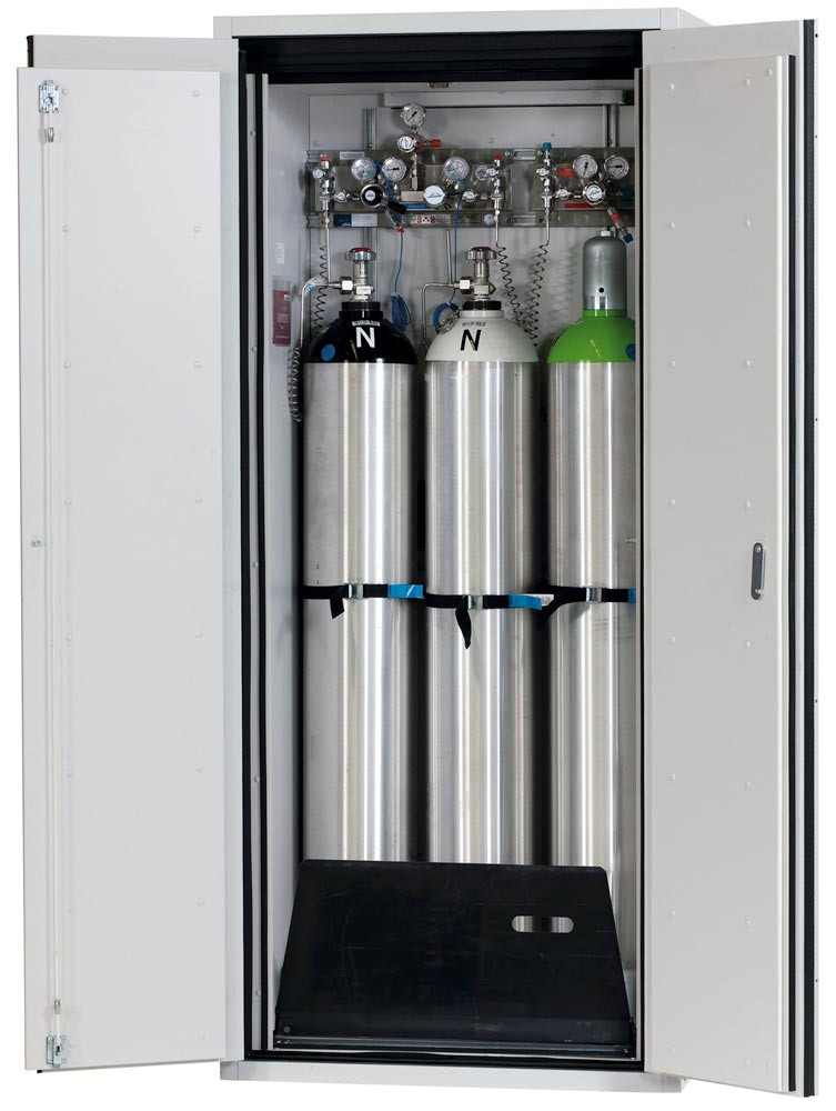 Druckgasflaschenschrank, 30 Min. feuerwiderstandsfähig, für 3x50-l-Flaschen, BxTxH 900x615x2050 mm, RAL 7035