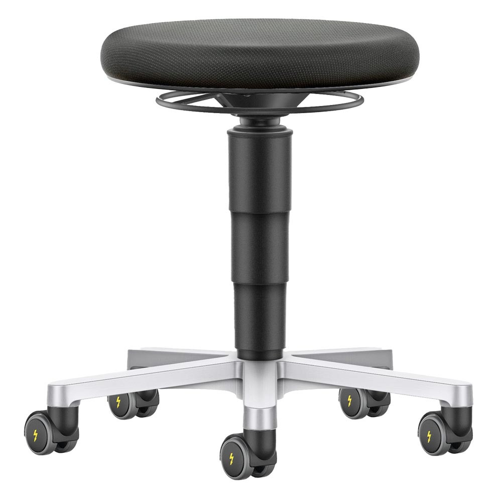 ESD-Arbeitshocker mit Gasfeder-Hnverstellung, mit Stoff-Sitzfläche schwarz und Rollen, Sitzfläche Durchm. 400 mm, Sitz H 450-650 mm E6475790