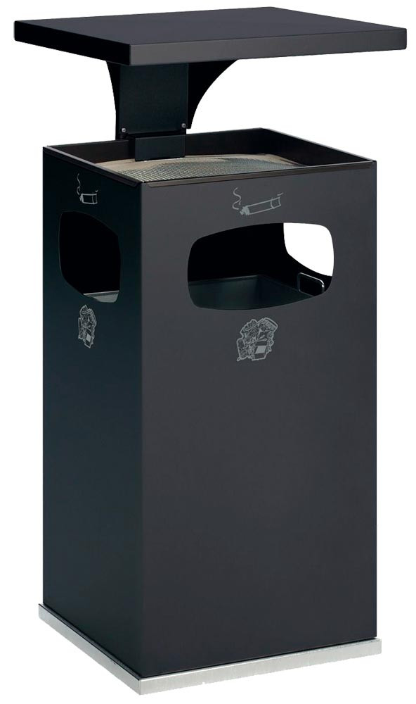 Eckiger Kombi-Ascher, verz. Sieb, Dach, verz. Inneneimer 72 l, RAL 7021, BxTxH 500x500x955 mm