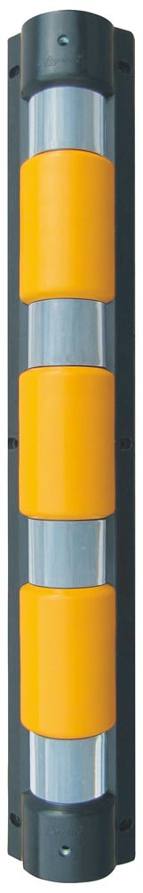 Eckschutzschiene, gelb-schwarz, 4 Ringe 270 Grad retroreflektierend und 3 Stoßabsorber aus gelben PVC, L. 900 mm, ohne Befestigungsmaterial