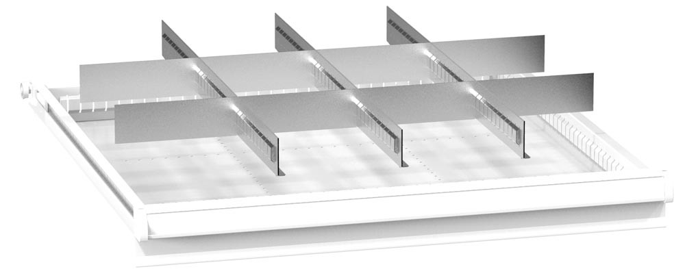 Einteilungsmaterial-Set, 3 Schlitzwände, 8 Trennbleche, für FH 150 mm, passend für Gehäusegröße BxT 731x753 mm E1613803
