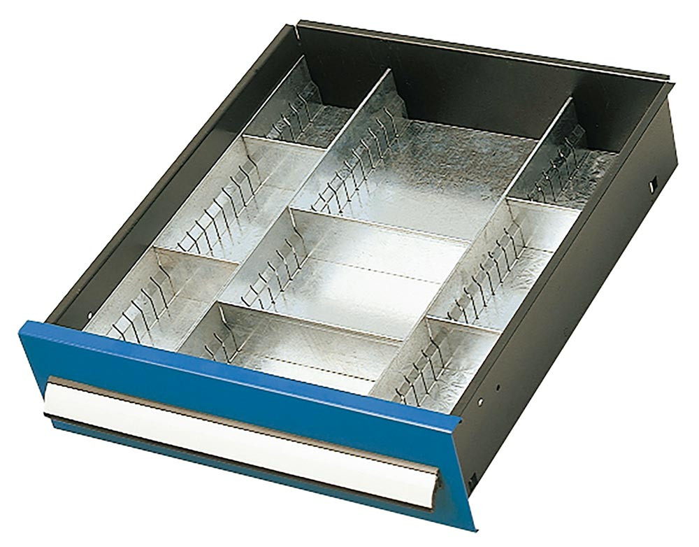 Einteilungsset Schubladen BxH 500 x 100 mm, für Schwerlastschränke mit Vertikalauszügen, verzinkt E6409677