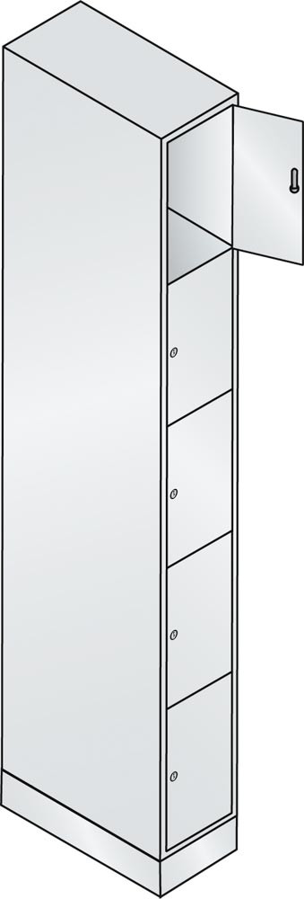 Fächerschrank, 1x5 Fächer, Fachbreite innen 190 mm, BxTxH 240x480x1950 mm, RAL 7035 E868660