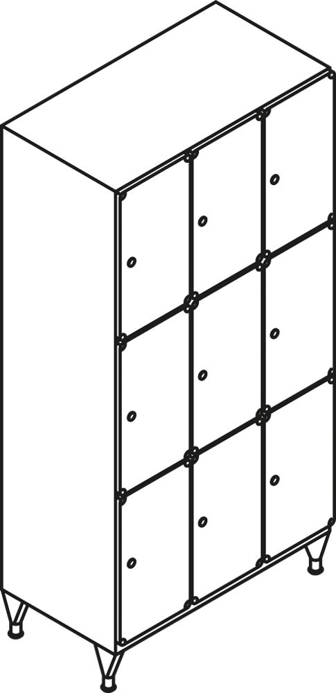 Fächerschrank, 3x3 Fächer, Abt. B 400 mm, Selbstbelüftungskonzept, BxTxH 1200x525x1980 mm, RAL 7035