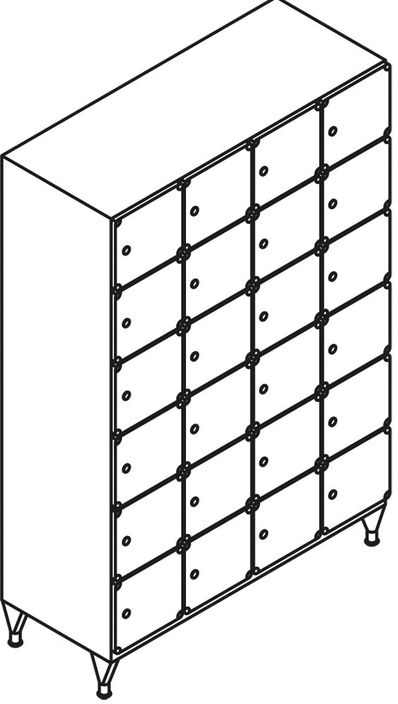 Fächerschrank, 4x6 Fächer, Abt. B 300 mm, Selbstbelüftungskonzept, BxTxH 1200x525x1980 mm, RAL 7035/3003