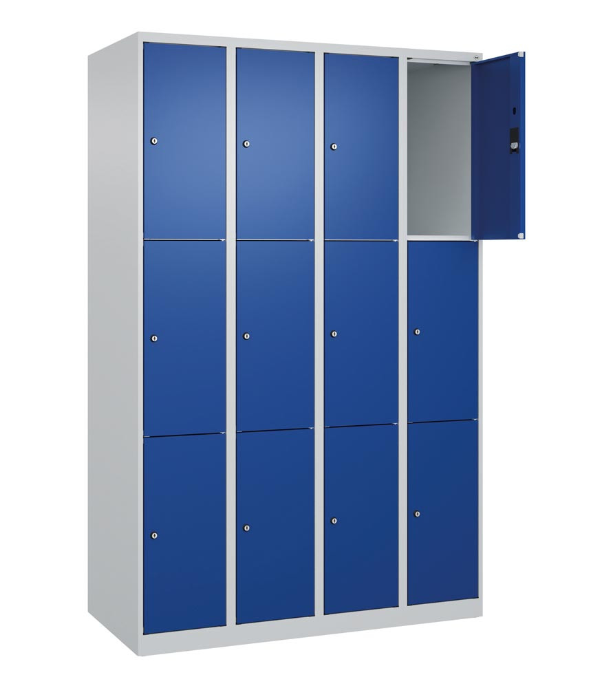Fächerschrank, BxTxH 1200x500x1850 mm, 4x3 Fächer, Abt.B 300 mm, bodenstehend, Schloss, glatte Türen, RAL 7035/5010