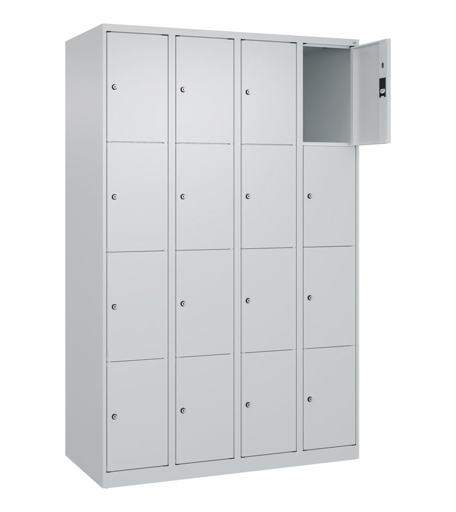 Fächerschrank, BxTxH 1200x500x1850 mm, 4x4 Fächer, Abt.B 300 mm, bodenstehend, Schloss, glatte Türen, RAL 7035