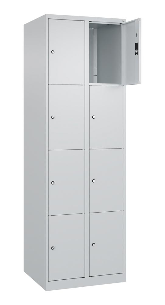 Fächerschrank, BxTxH 600x500x1850 mm, 2x4 Fächer, Abt.B 300 mm, bodenstehend, Schloss, glatte Türen, RAL 7035