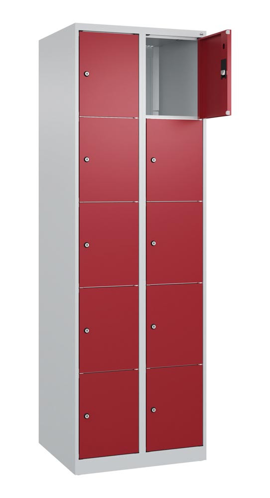 Fächerschrank, BxTxH 600x500x1850 mm, 2x5 Fächer, Abt.B 300 mm, bodenstehend, Schloss, glatte Türen, Farbwahl
