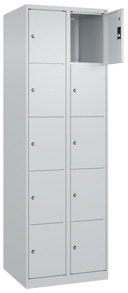 Fächerschrank, BxTxH 600x500x1850 mm, 2x5 Fächer, Abt.B 300 mm, bodenstehend, Schloss, glatte Türen, RAL 7035