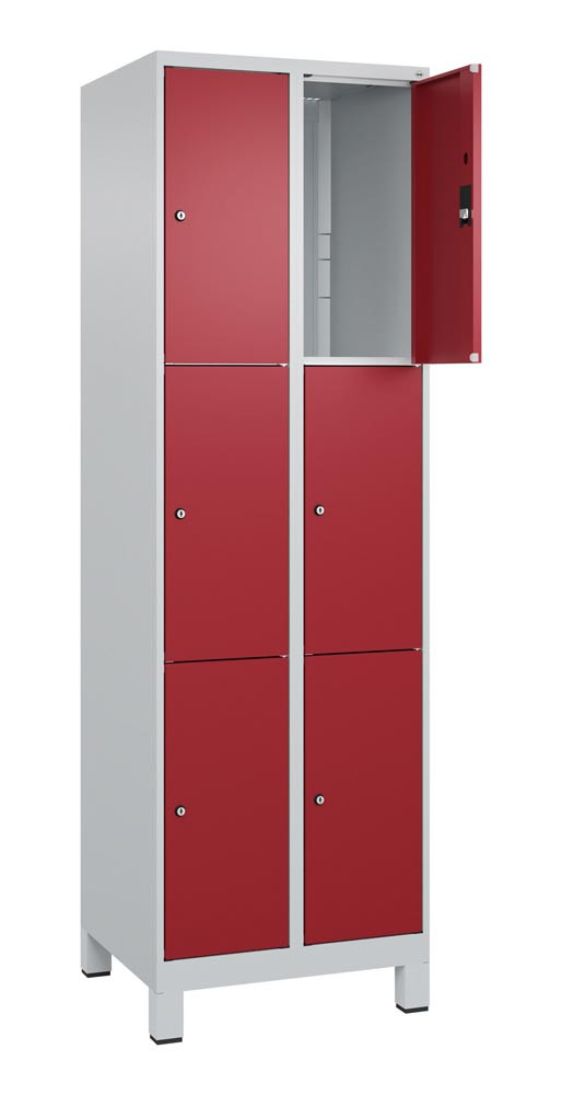 Fächerschrank, BxTxH 600x500x1950 mm, 2x3 Fächer, Abt.B 300 mm, Füße, Schloss, glatte Türen, Farbwahl