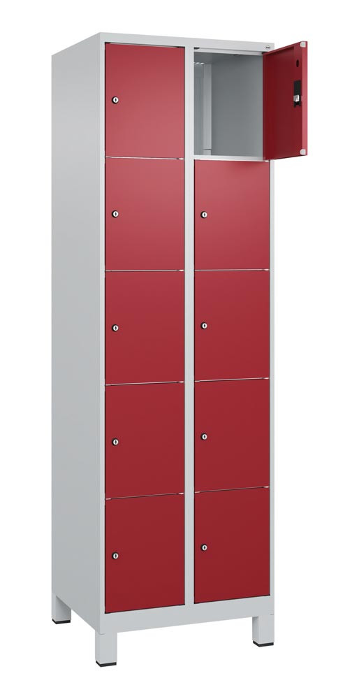 Fächerschrank, BxTxH 600x500x1950 mm, 2x5 Fächer, Abt.B 300 mm, Füße, Schloss, glatte Türen, Farbwahl