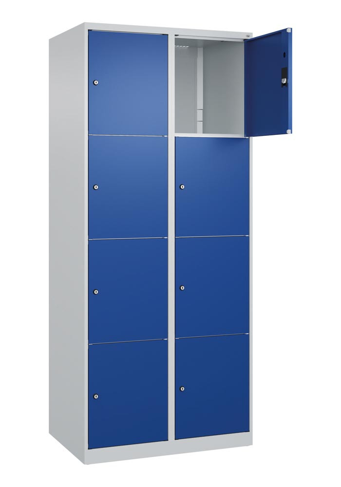 Fächerschrank, BxTxH 800x500x1850 mm, 2x4 Fächer, Abt.B 400 mm, bodenstehend, Schloss, glatte Türen, RAL 7035/5010