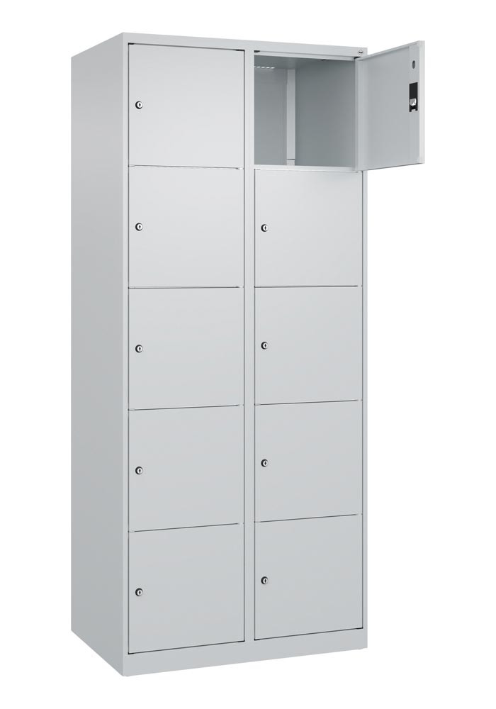 Fächerschrank, BxTxH 800x500x1850 mm, 2x5 Fächer, Abt.B 400 mm, bodenstehend, Schloss, glatte Türen, RAL 7035