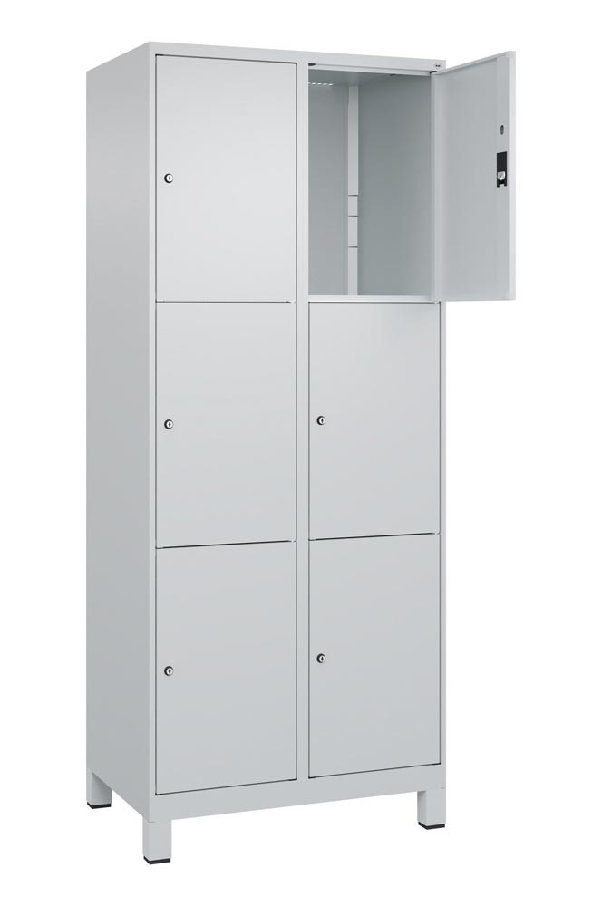 Fächerschrank, BxTxH 800x500x1950 mm, 2x3 Fächer, Abt.B 400 mm, Füße, Schloss, glatte Türen, RAL 7035