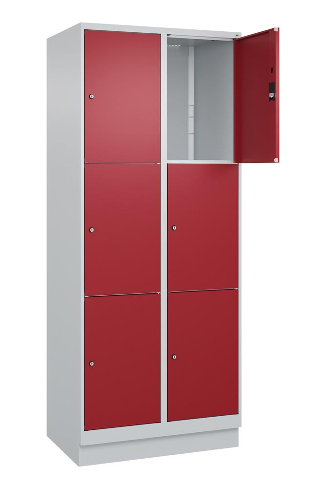 Fächerschrank, BxTxH 800x500x1950 mm, 2x3 Fächer, Abt.B 400 mm, Sockel, Schloss, glatte Türen, Farbwahl