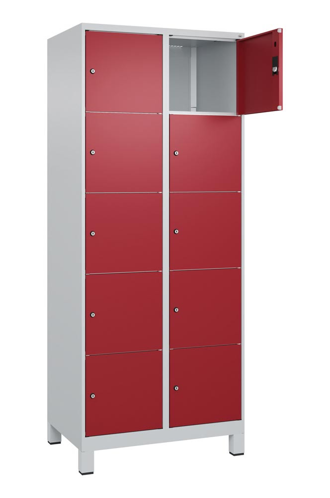 Fächerschrank, BxTxH 800x500x1950 mm, 2x5 Fächer, Abt.B 400 mm, Füße, Schloss, glatte Türen, Farbwahl