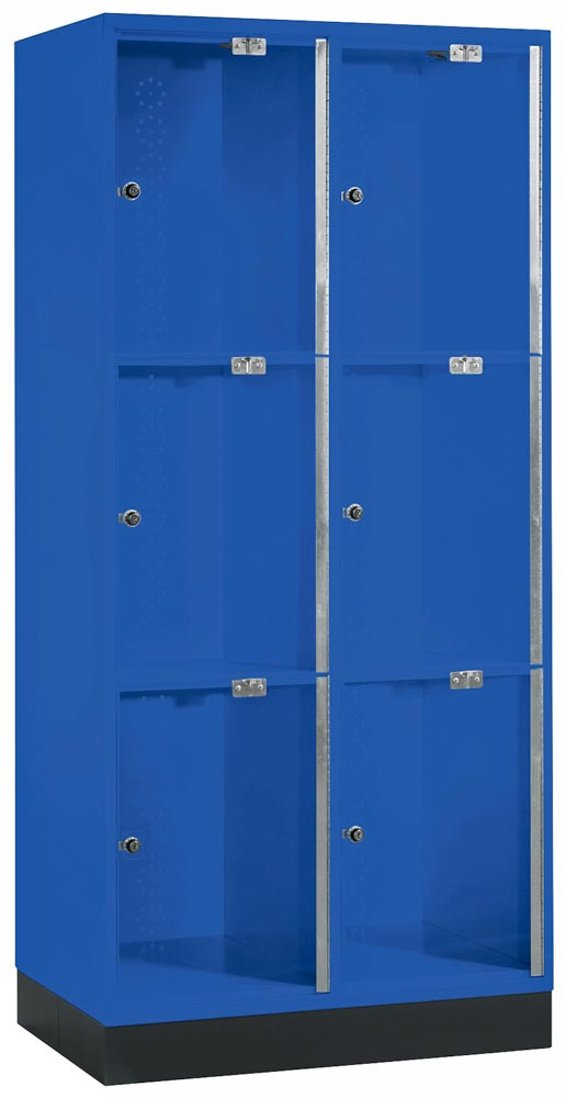 Fächerschrank mit Acrylglastüren, 2x3 Fächer 510 mm, BxTxH 820x500x1750 mm, Schloss, RAL 5012 E1988961