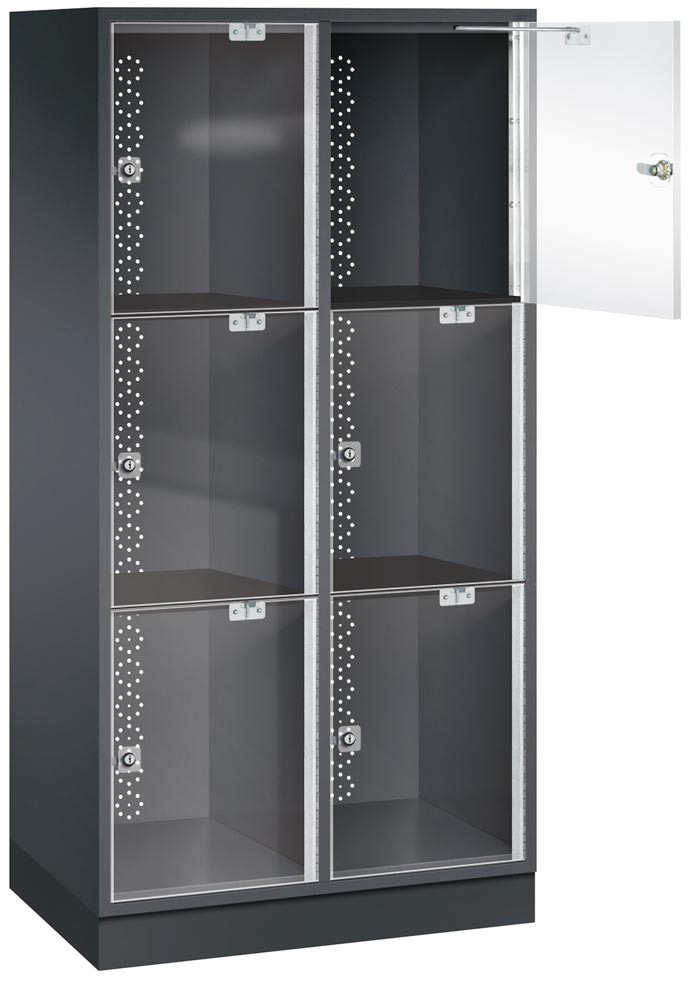 Fächerschrank mit Acrylglastüren, 2x3 Fächer 510 mm, BxTxH 820x500x1750 mm, Schloss, RAL 7021
