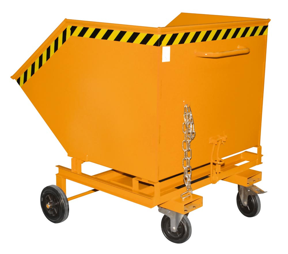 Fahrbarer Kippbehälter mit Einfahrtaschen, Volumen 1,0 cbm, LxBxH 1420x1340x1290 mm, lackiert RAL 2000 gelborange