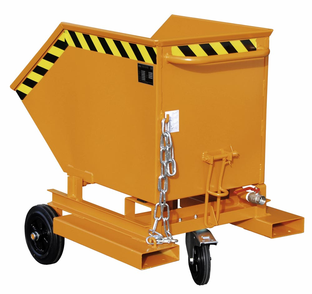 Fahrbarer Späne-Kippbehälter mit Einfahrtaschen, Volumen 0,4 cbm, LxBxH 1320x900x1090 mm, lackiert RAL 2000 gelborange
