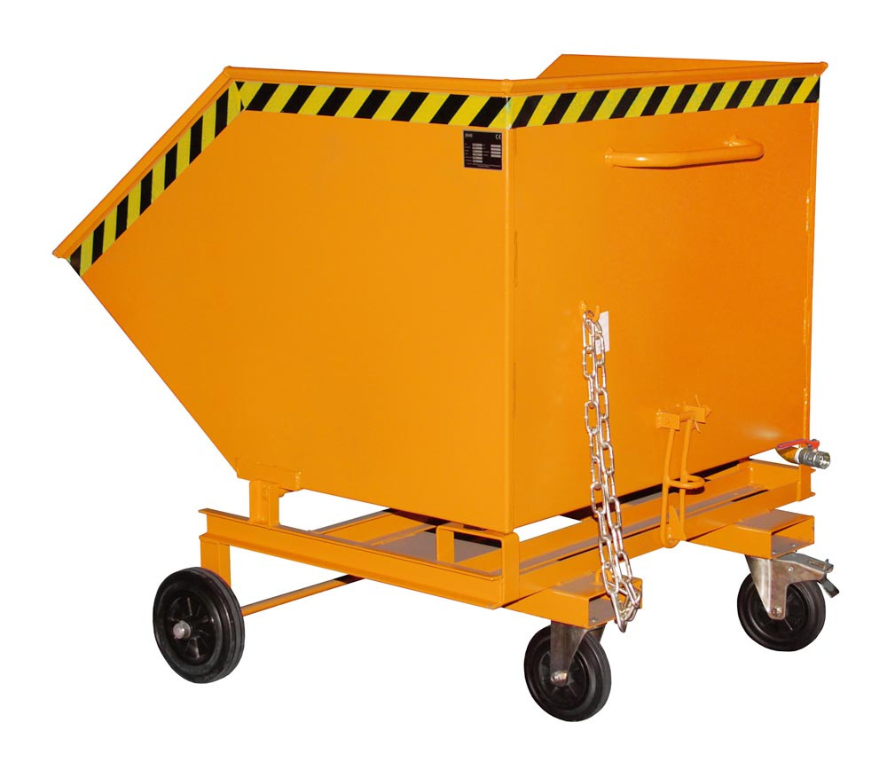 Fahrbarer Späne-Kippbehälter mit Einfahrtaschen, Volumen 0,6 cbm, LxBxH 1395x1070x1220 mm, lackiert RAL 2000 gelborange E1985228