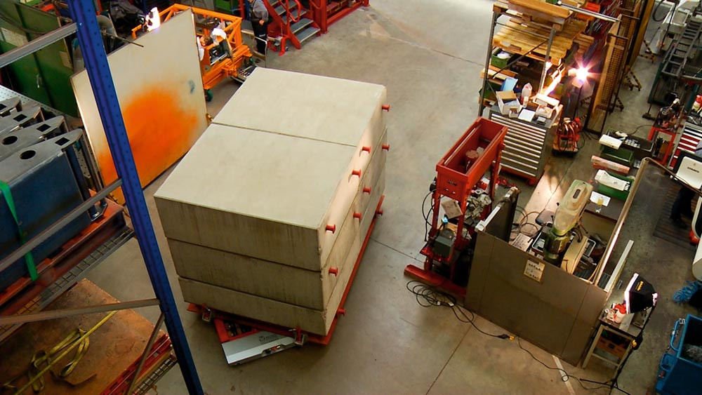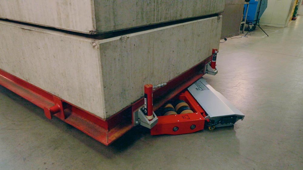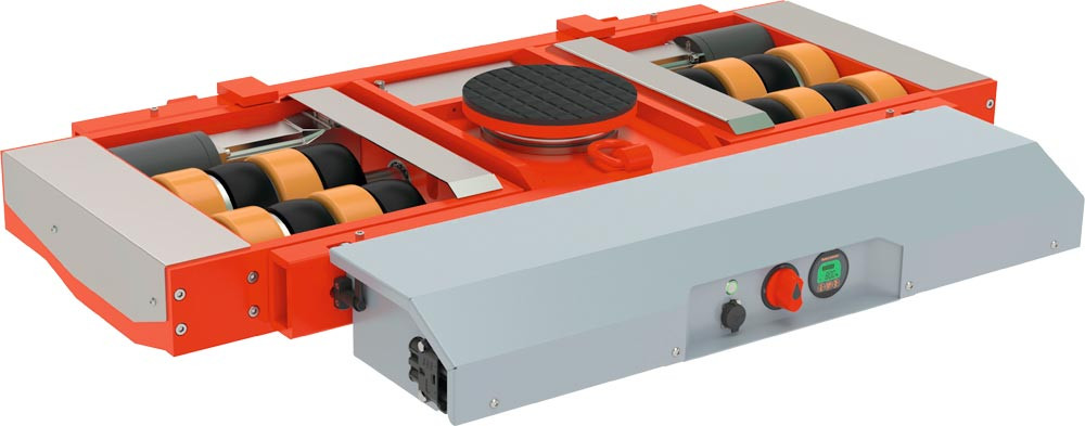 Fahrwerk, elektrisch angetrieben, Traglast 15.000 kg, BxLxH 835x1215x180 mm, Auflagefläche Kassette Durchm. 215 mm, inkl. Ladegerät und Fernsteuerung