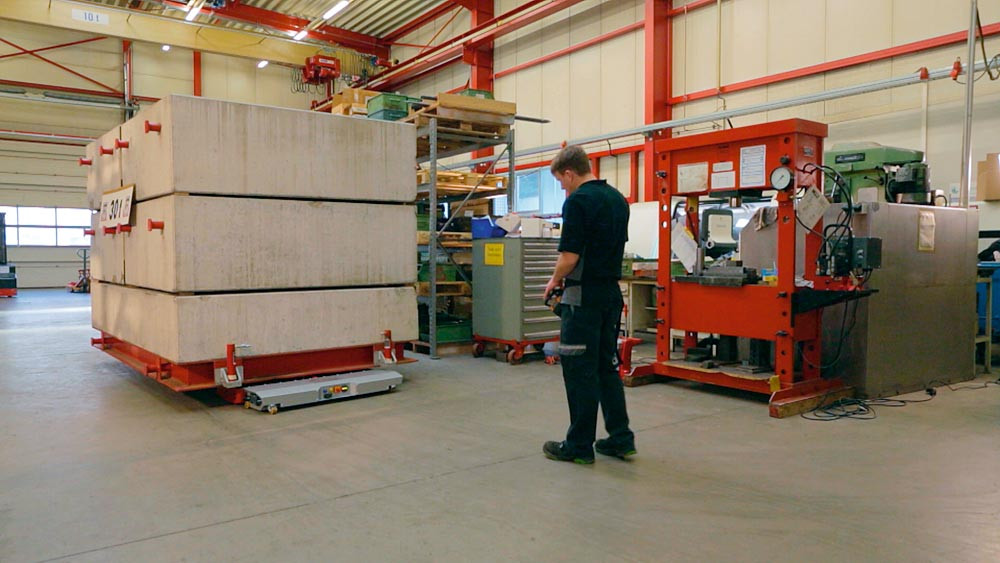 Fahrwerk, elektrisch angetrieben, Traglast 5.000 kg, BxLxH 750x900x180 mm, Auflagefläche Kassette Durchm. 150 mm, inkl. Ladegerät und Fernsteuerung E6041090