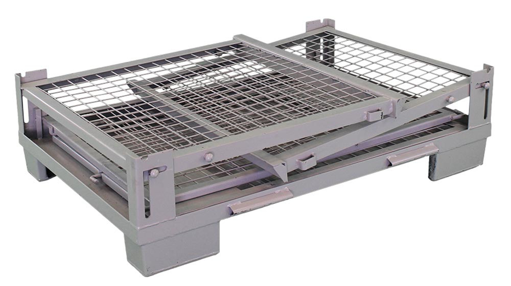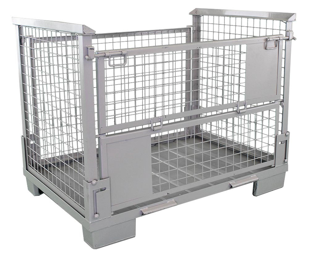 Faltbare Gitterboxpalette, 1 Längswand halb abklappbar, RAL 7030 steingrau, LxBxH 1240x835x970 mm