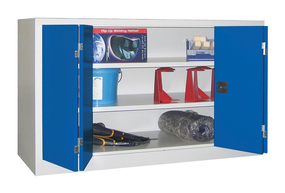 Falttürenschrank, Vollblechtüren, 2 verzinkte Böden, BxTxH 1200x400x1000 mm, RAL 7035/5010 E1572935