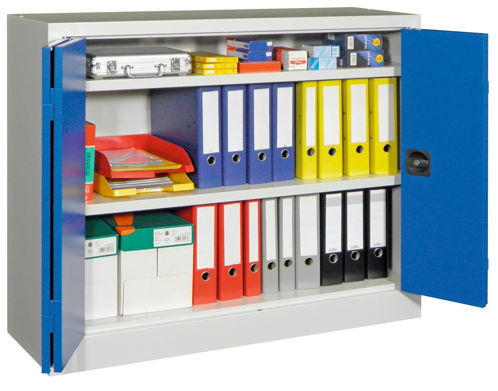 Falttürenschrank, Vollblechtüren, 2 verzinkte Böden, BxTxH 1200x400x1000 mm, RAL 7035/5010 E1572935
