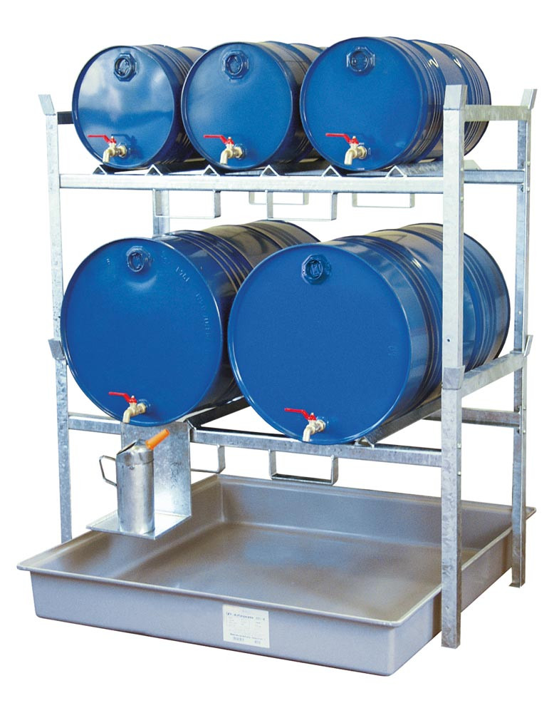 ∙ Für die vorschriftsmäßige und platzsparende Lagerung von Fässern und anderen Gebinden ∙ Fassregale komplett feuerverzinkt ∙ Korrosionsfreie GFK-Auffangwannen für langfristigen, sicheren Einsatz ∙ Aufgrund der absoluten Korrosionsbeständigkeit dürfen GFK-Auffangwannen direkt auf dem Boden aufgestellt werden ∙ Verschiedene Regalvarianten für unterschiedliche Gebinde und Behälter ∙ Durch die vorstehende Auffangwanne auch zum Abfüllen geeignet ∙ Auffangwanne mit allgemeiner bauaufsichtlicher Zulassung des DIBt-Berlin
