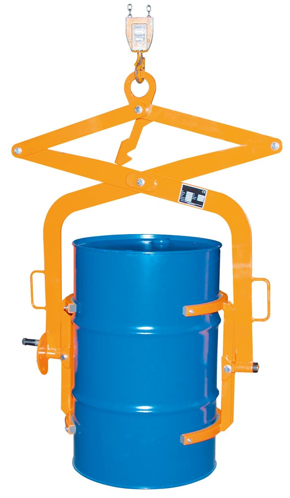 ∙ Zum vertikalen und horizontalen Heben und Transportieren von Stahl-Spundfässern und Stahl - Deckelfässern ∙ Auswechselbarer Gummianschlag zur Vermeidung von Fassbeschädigungen ∙ Arretierhebel sichert Offenstellung ∙ Kippstellung über Schalthebel wählbar