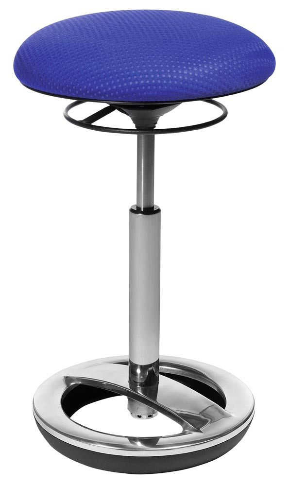Fitness-Hocker mit Schwing-Effekt, Sitz-Durchm.xH 365x490-700 mm, Standfußring Aluminium poliert, Sitzfläche royalblau