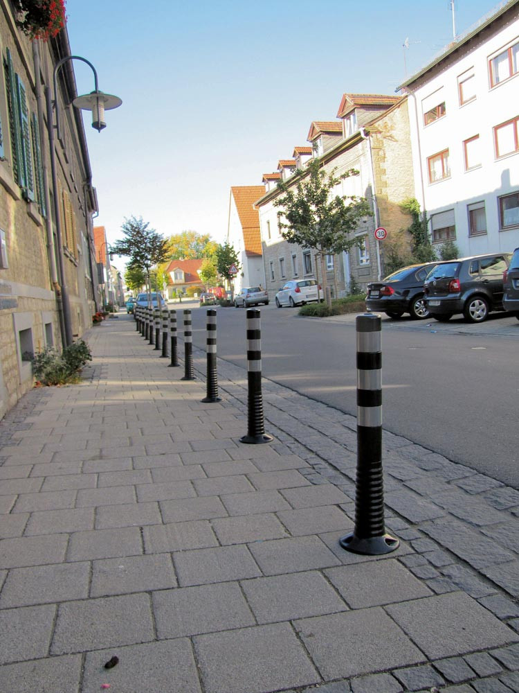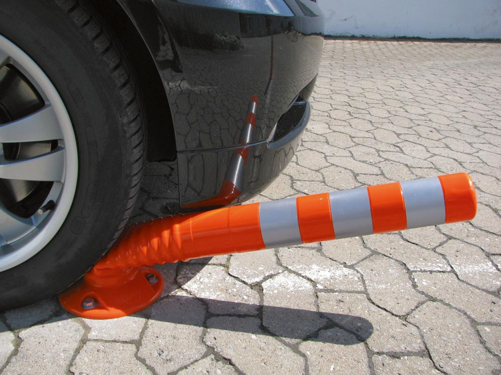 ∙ Schützt Menschen und schont Fahrzeuge · Selbstaufrichtender Sperrpfosten, nachgiebig und flexibel wie Gummi · Extrem robust, Material elastischer Kunststoff · Kann am Boden verschraubt werden, kein Ausbrechen der Befestigung möglich · Retroreflektierende Streifen für gute Nachtsichtbarkeit · In unterschiedlichen Höhen und Farbvarianten erhältlich ∙ Ohne Befestigungsmaterial ∙ Rohr-Ø 80 mm ∙ Fuß-Ø 200 mm