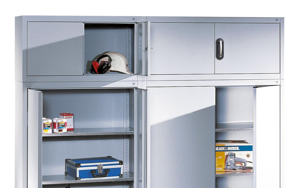 Flügeltüren-Aufsatzschrank, BxTxH 930x400x500 mm, RAL 7035/5012 E1979748