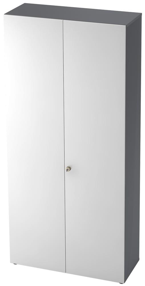 Flügeltürenschrank, mit GarderobeBxTxH 800x420x2156 mm, 6 OH, 2 Böden, graphit/weiß