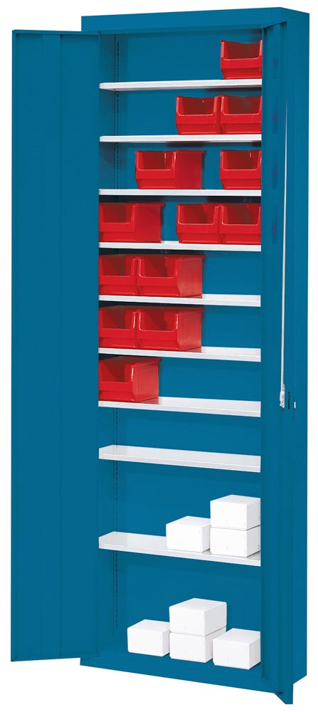 Flügeltürenschrank, BxTxH 680x280x1740 mm, RAL 5007 brilliantblau, Fachlast 50 kg E6043814