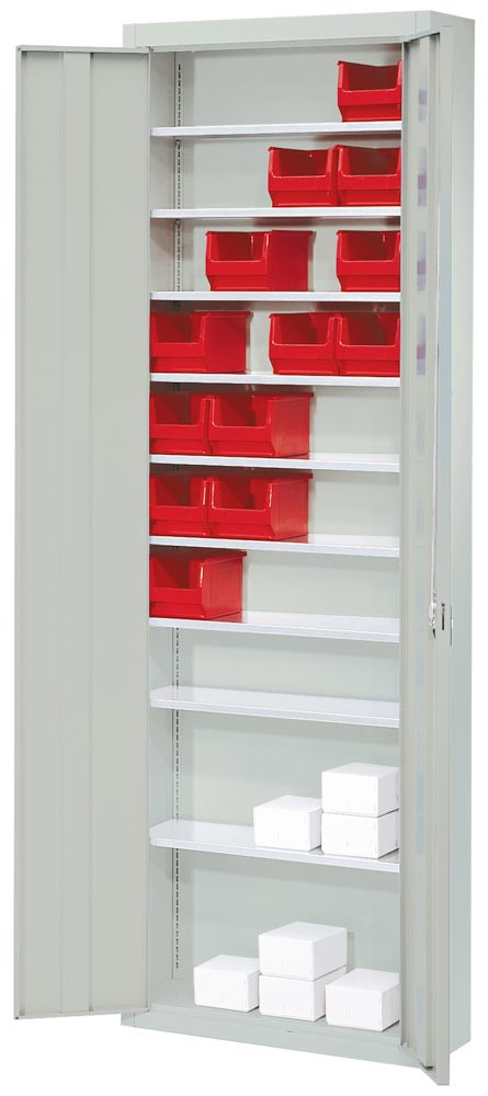 Flügeltürenschrank, BxTxH 680x280x1740 mm, RAL 7035 lichtgrau, Fachlast 50 kg E6043816