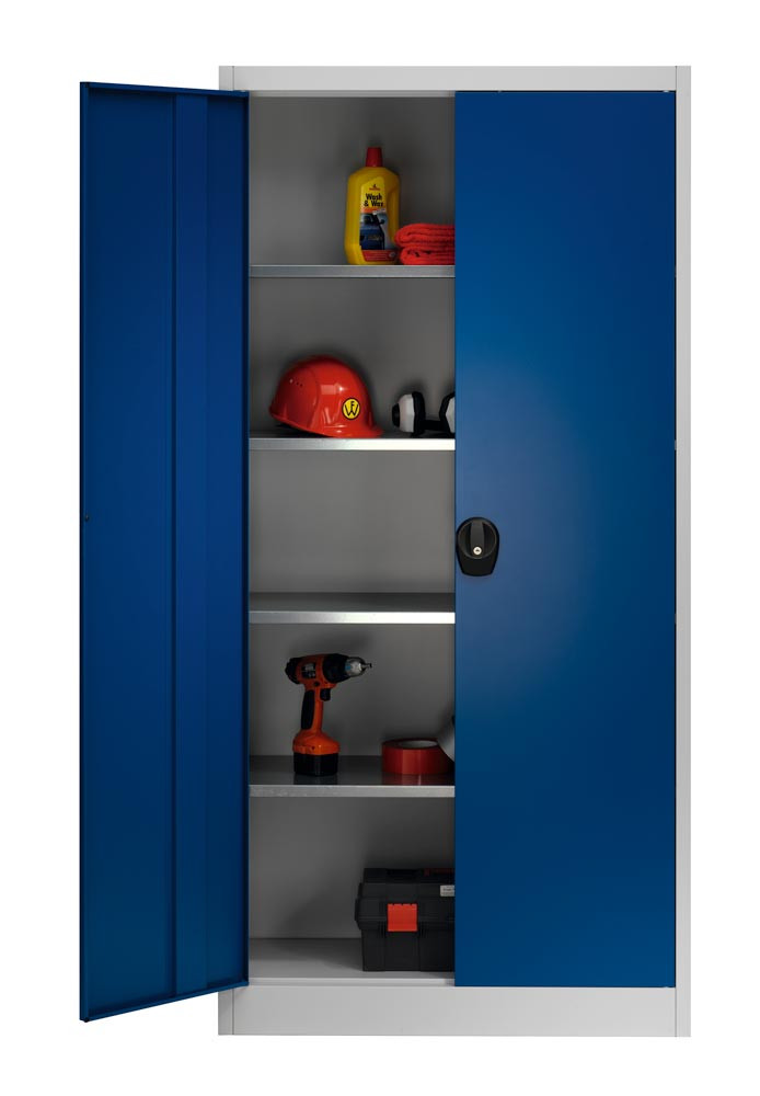 Flügeltürenschrank, BxTxH 950x420x1950 mm, 4 Böden, RAL 7035/5010