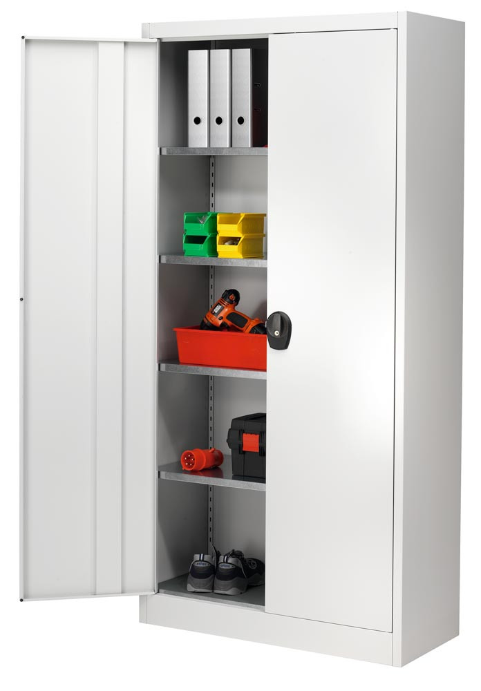 Flügeltürenschrank, BxTxH 950x420x1950 mm, 4 Böden, RAL 7035/7035