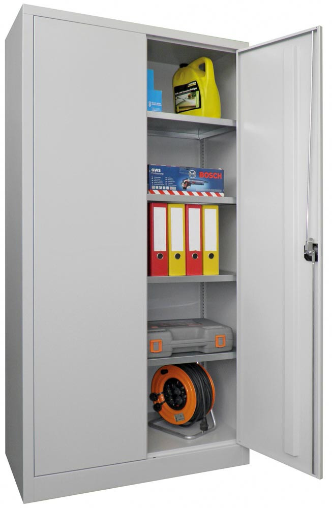Flügeltürenschrank, Vollblechtüren, 4 verzinkte Böden, BxTxH 640x400x1950 mm, RAL 7035 E1577520