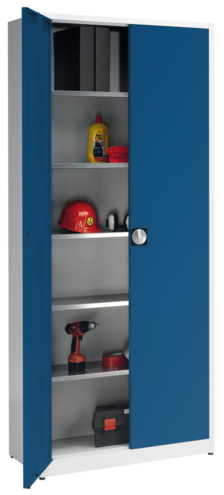 Flügeltürenschrank, Vollblechtüren, 5 verzinkte Böden, BxTxH 950x420x2200 mm, RAL 7035/5010