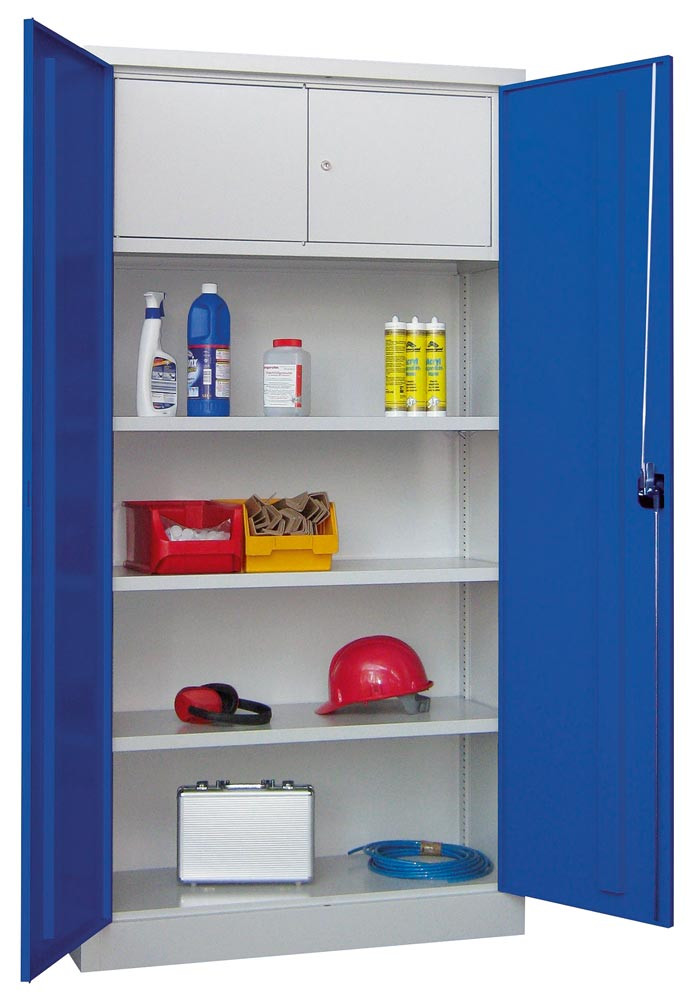 Flügeltürenschrank, oben verschließbares Wertfach, darunter 3 besch. Böden, Zyl.-Schl., BxTxH 1000x500x1950 mm, RAL 5010 E1572782