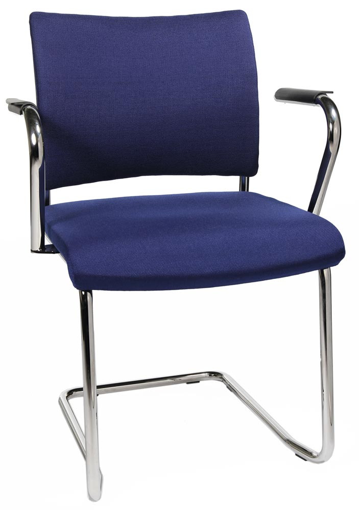 · Ergonomisch geformte und gepolsterte Rückenlehne, Rückseite mit kaschiertem Stoff · Bequem gepolsteter Muldensitz mit abgerundeter Vorderkante · Verchromtes Schwingergestell aus Rundrohr Ø 22 mm · Kunststoff-Fußgleiter · Stapelbar bis zu 2 Stühlen · Armlehnen optional gegen Aufpreis lieferbar · VE 2 Stück