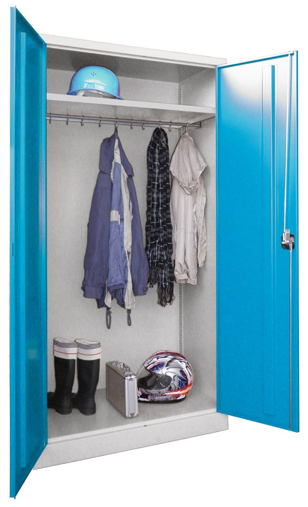 Garderobenschrank, durchg. beschichteter Hutboden, darunter Stange mit 10 Haken, Zyl.-Schl., BxTxH 1000x600x1950 mm, RAL 7035/5015