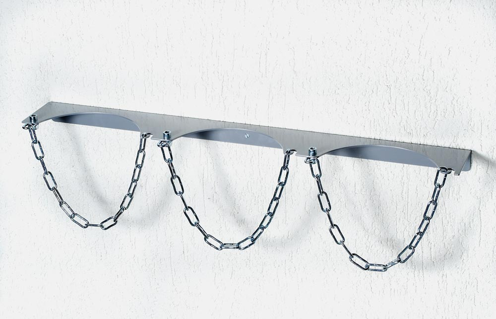 Gasflaschen-Wandhalterung, verzinkt, für 3 Flaschen Durchm. 320 mm, Kettensicherung + Bohrungen zur Wandbefestigung