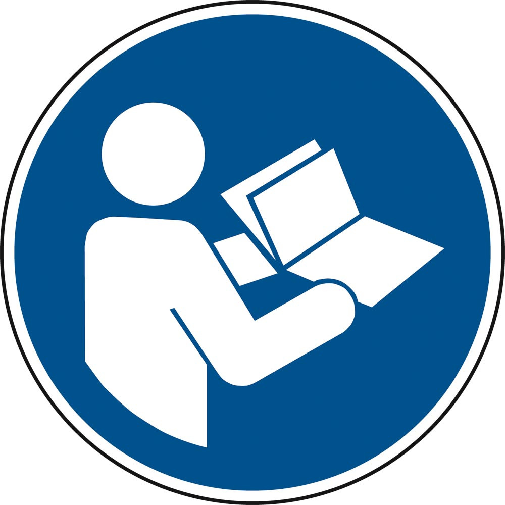 Gebotsschild, Anleitung beachten, Folie, Durchm. 100 mm