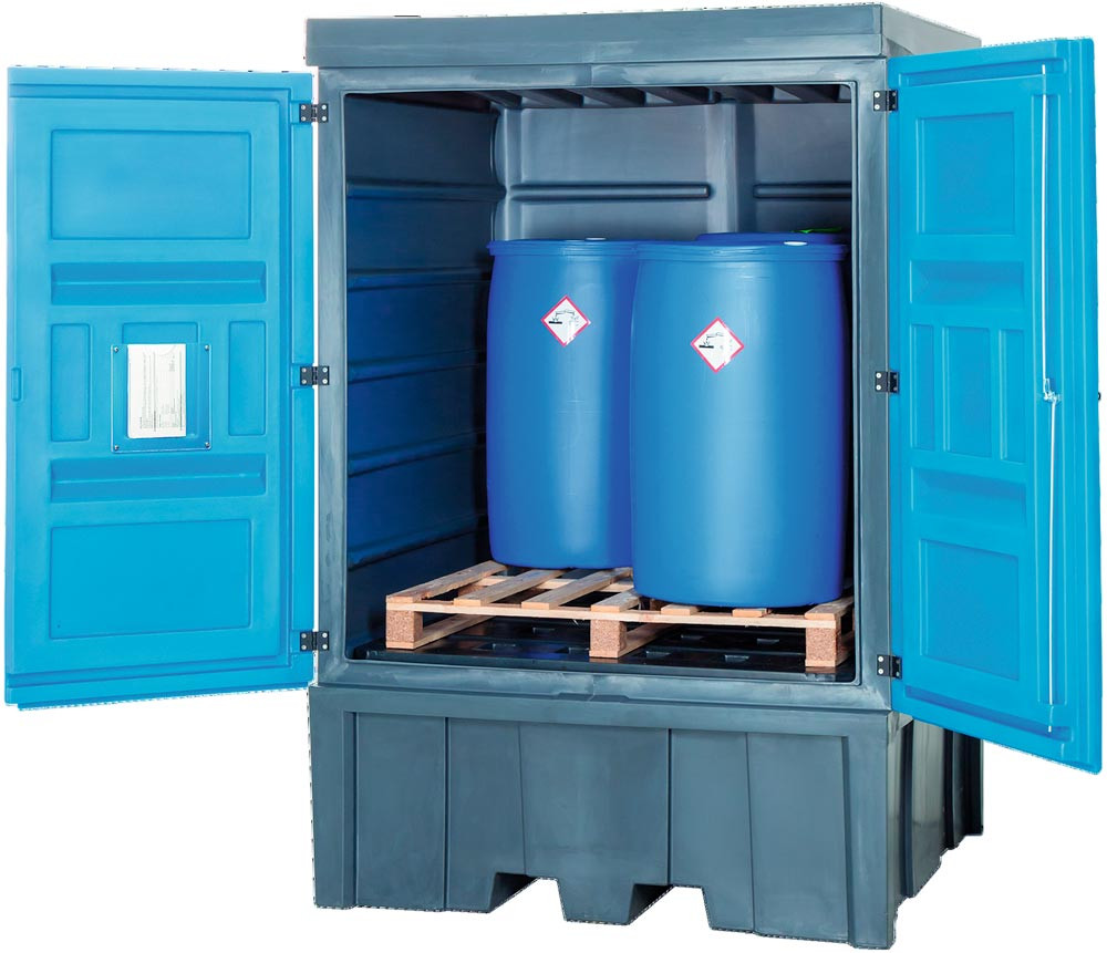 Gefahrstoff-Depot aus Polyethylen, zur Lagerung von 2 Fässern a 200 l, Auffangvolumen 240 l, BxTxH 1140x1410x1980 mm E6423078